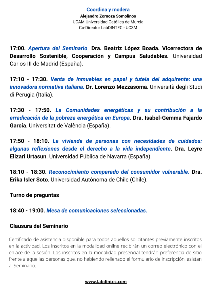 Publicaciones: Actas del IV Seminario Internacional LabDINTEC «Derecho inmobiliario y protección de colectivos vulnerables» (disponible en e-Archivo UC3M)